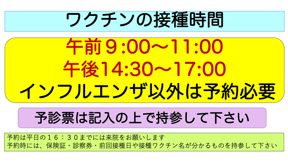県内在住の方で65歳以上の方は、居住市町村の予診票(補助を受ける方)を持参してください。 - インフルエンザワクチン受付時間