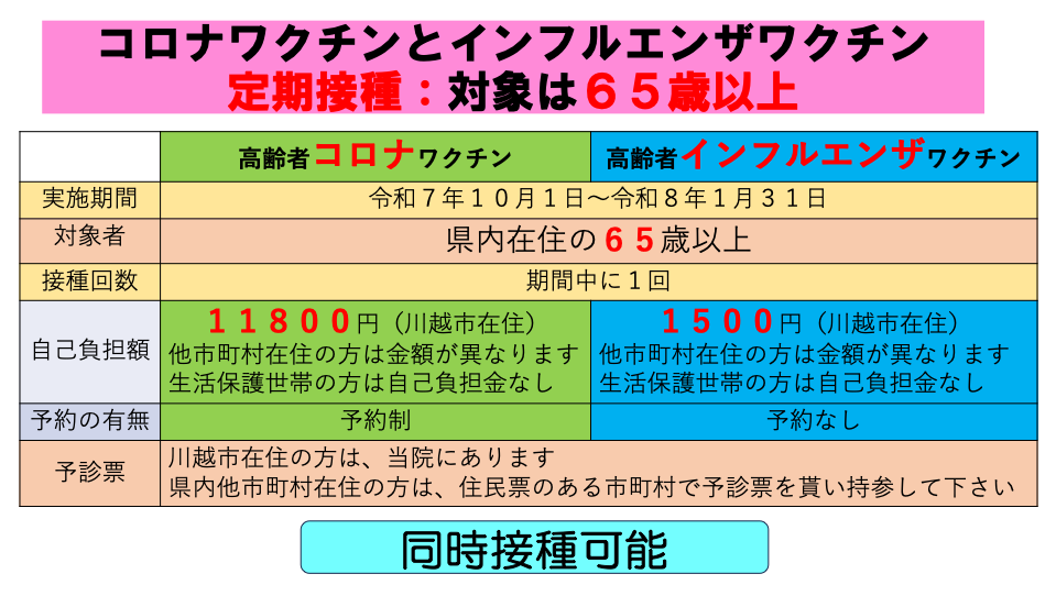 | コロナワクチン | 65歳以上 川越市在住/県内在住 |