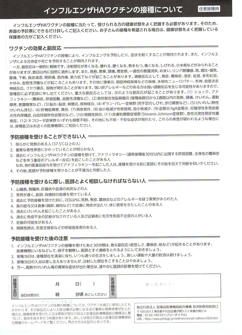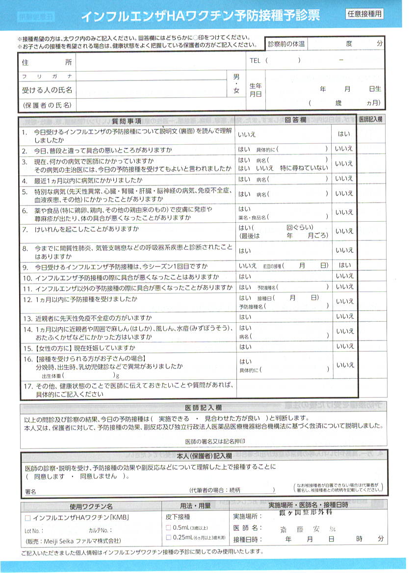 県内在住の方で65歳以上の方は、居住市町村の予診票(補助を受ける方)を持参してください。 - インフルエンザワクチン受付時間